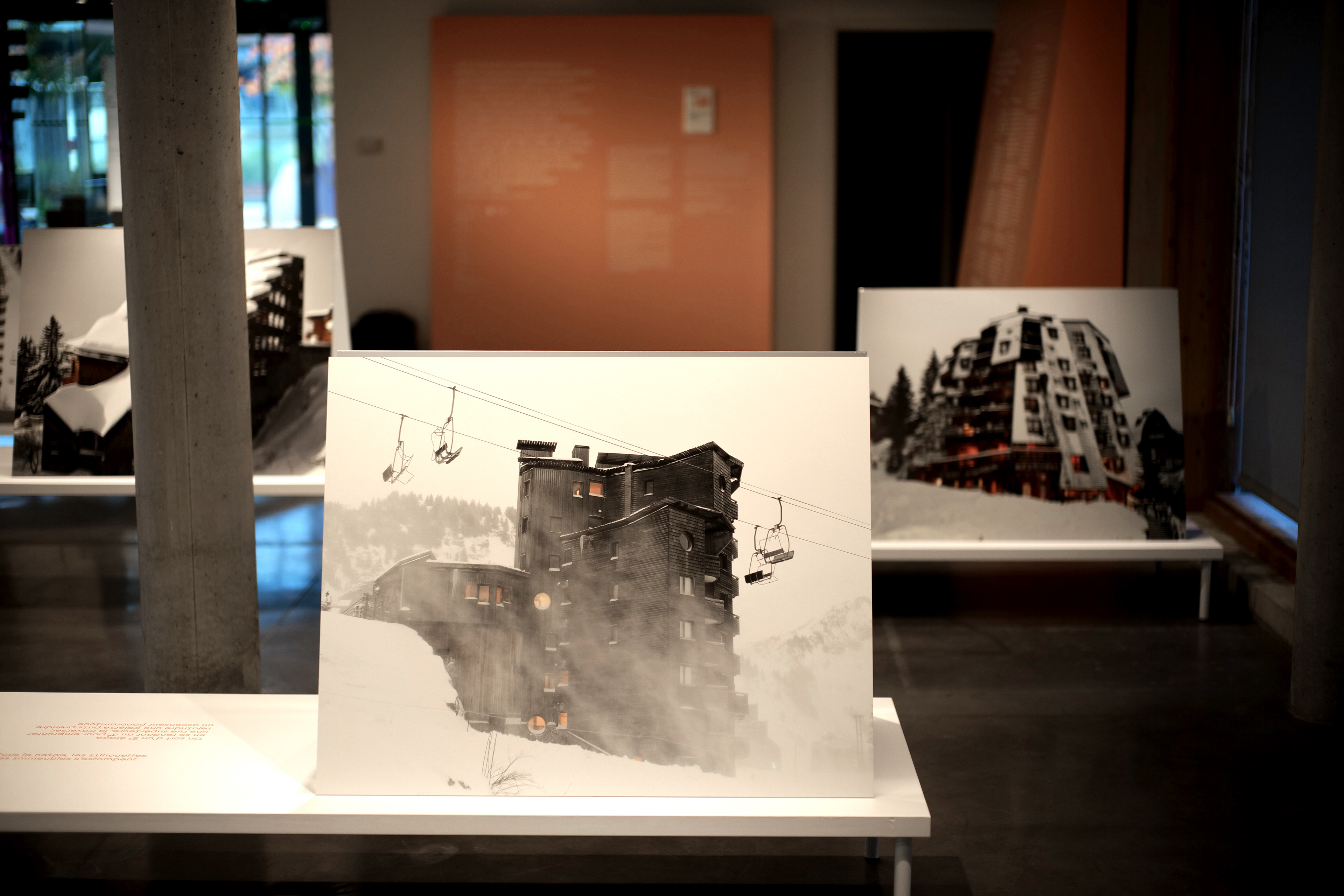 During winter 2024-25, the CAUE of Haute-Savoie presents the exhibition «L'îlot blanc, Avoriaz», based on the book-guide Avoriaz, une architecture de neige. (Collection Architecture et Stations, edited by the CAUE of Haute-Savoie and Les Éditions 205). The exhibition showcases photographs by François Deladerrière — a work commissioned by the CAUE for the book. The scenography (Carine Altermatt) makes allusion to the topography and the architecture of the resort in harmony with the graphic design, whose fonts were designed by the Bureau 205.