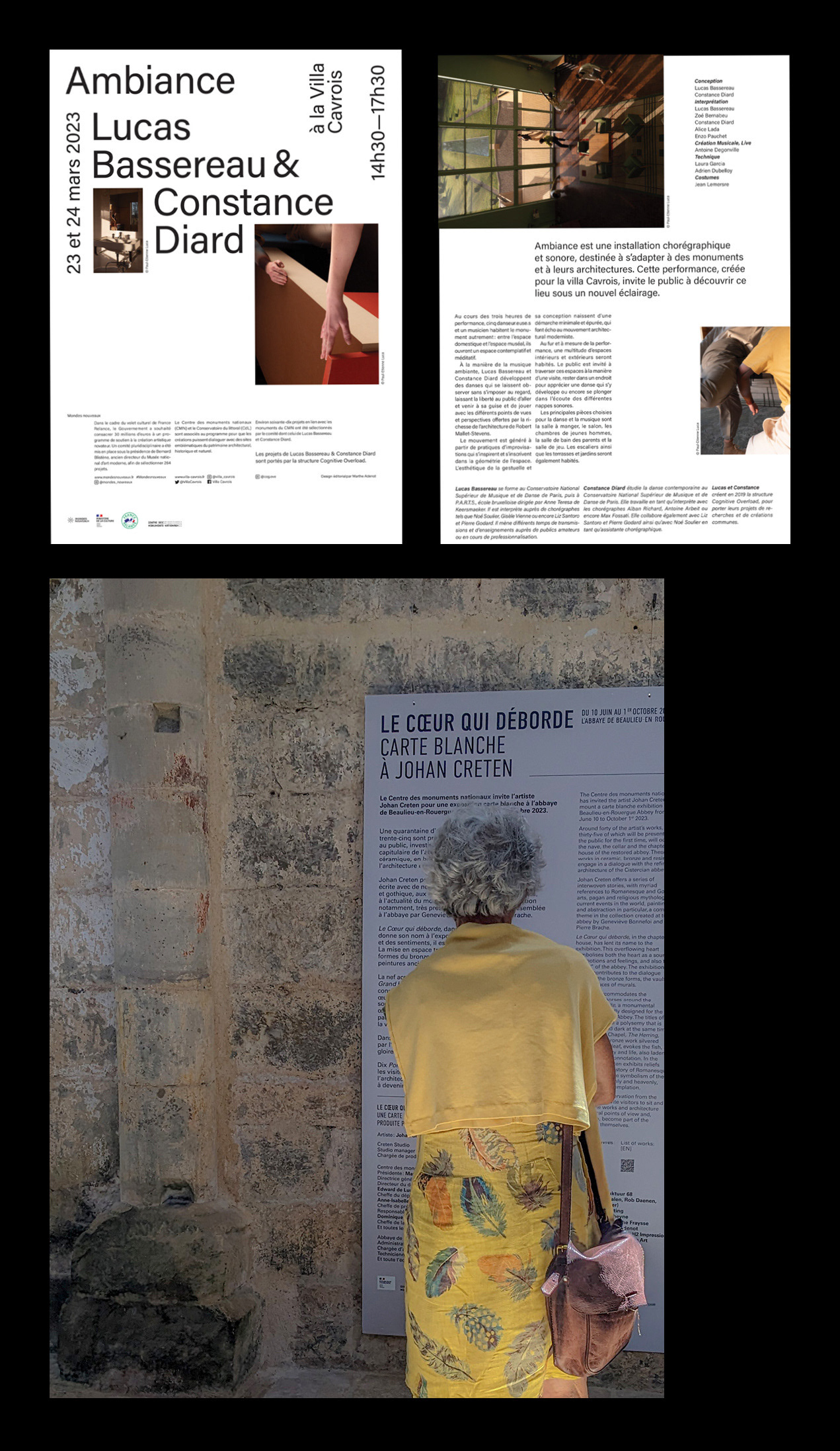 [2] Leaflets and exhibition boards made for le Centre des monuments nationaux during Belgian artist Johan Creten's exhibition at the Abbaye of Beaulieu-en-Rouergue, 2023.